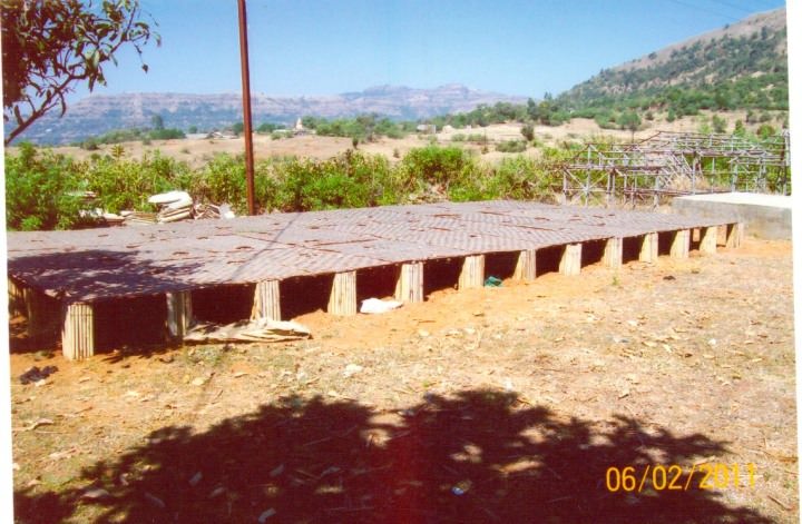 A hollow plinth was constructed using selection of hollow bamboos and the available bamboo mats with wire mesh,thin layer of concrete and proper centering.The plinth is three years old and is standing with required strength.